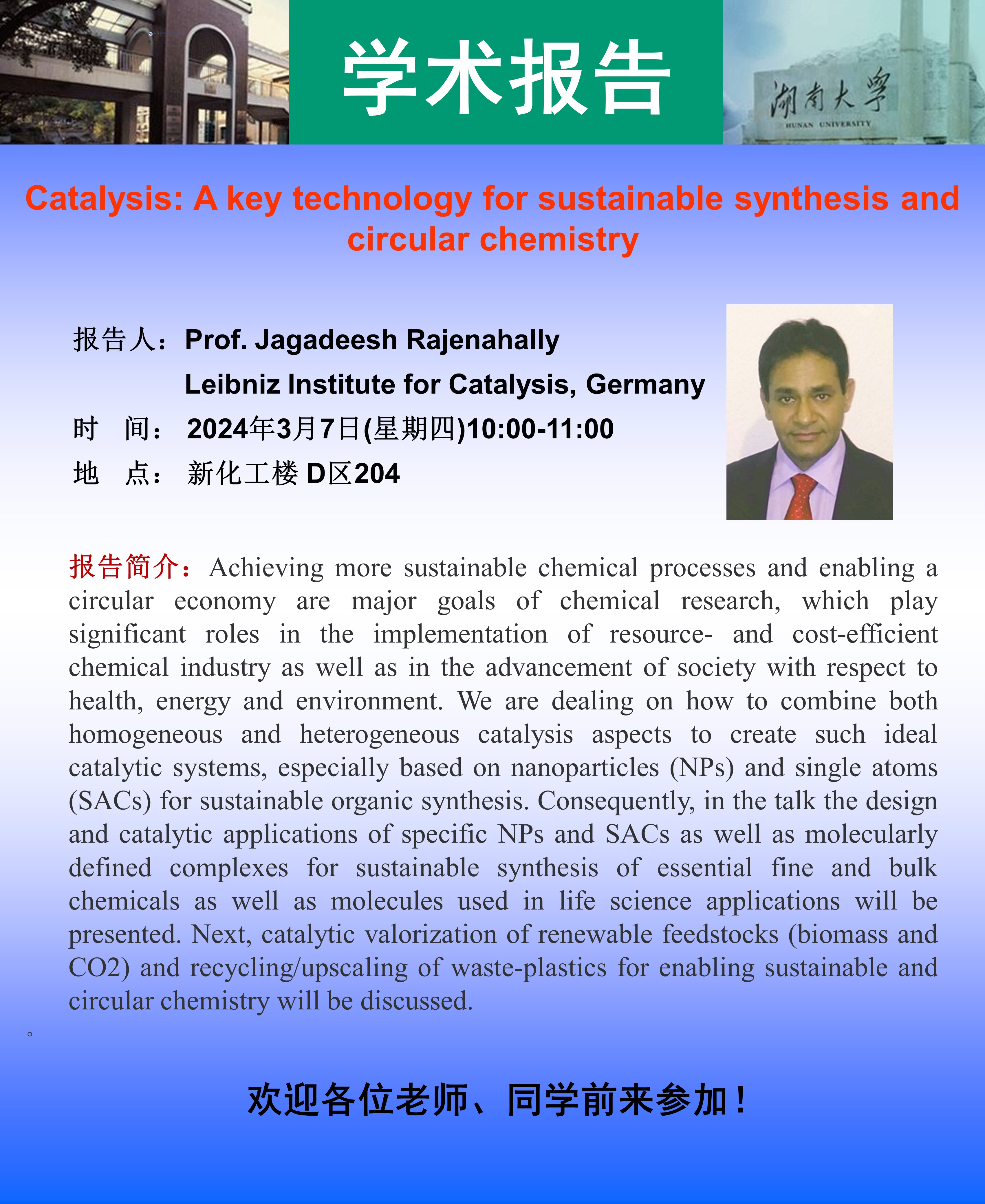 化工院:Catalysis: A key technology for sustainable synthesis and circular chemistry